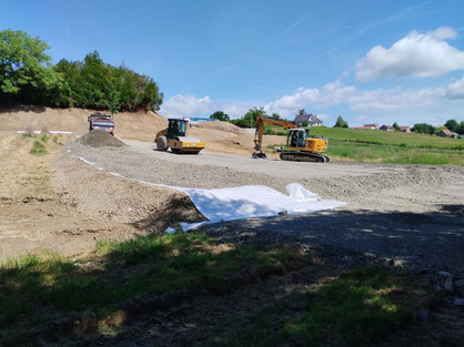 ➡️ Remblaiement et application d’une couche de réglage grâce aux matériaux provenant directement de notre carrière voisine, basée à Chalmoux